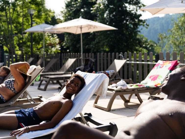 "Chalet Confort Mezzanine 2 ch 6 pers", bungalow 3-kamers 36 m2. Doelmatig ingericht: woon-/eetkamer met TV (Flatscreen TV). Uitgang naar het terras. 1 kamer met 1 2-pers bed (1 x 140 cm, lengte 190 cm). 1 kamer met 3 bedden (80 cm, lengte 190 cm). Open keuken (4 kookpitten (vlammen), magnetron, elektrische koffiemachine). Douche, aparte WC. Elektrische verwarming. Terras 15 m2, overdekt. Terrasmeubelen. Mooi uitzicht op het landschap. Ter beschikking: kinderstoel, kinderbed tot 2 jaar (extra). Niet rokers woning. Maximaal 1 huisdier/hond toegestaan. Rookmelders. De beschrijving betreft een voorbeeld van dit type woning in dit complex. Aanbod door een commerciële eigenaar volgens art. 155, IV, CGI
